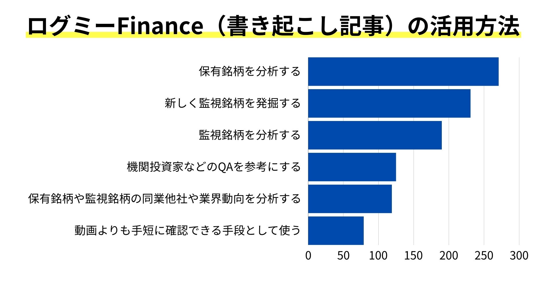 ・所要時間40分の説明会も書き起こしなら10分で読めると言われており、決算説明会の書き起こしから始まったログミーFinanceで根強い人気。・ログミーFinanceの書き起こしは出来高増加に好影響を及ぼす検証結果も出ています。