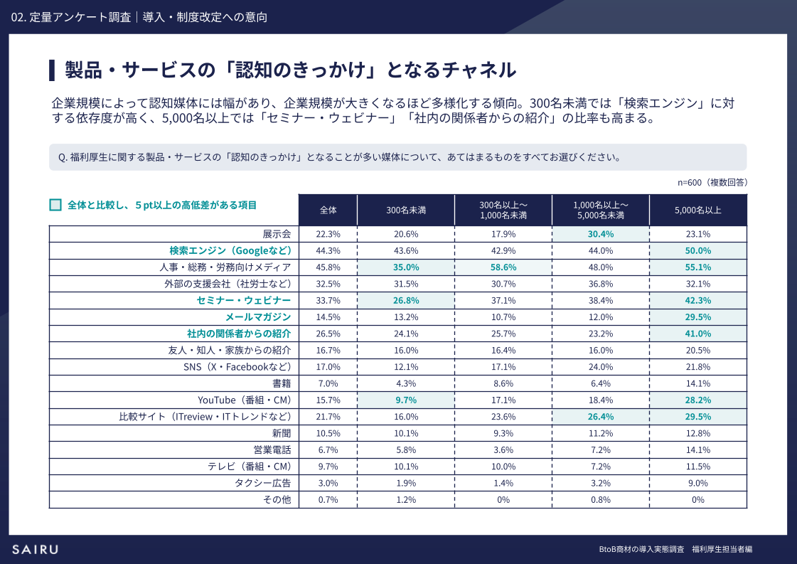 ■ 従業員規模によって商材の認知チャネルには幅がある