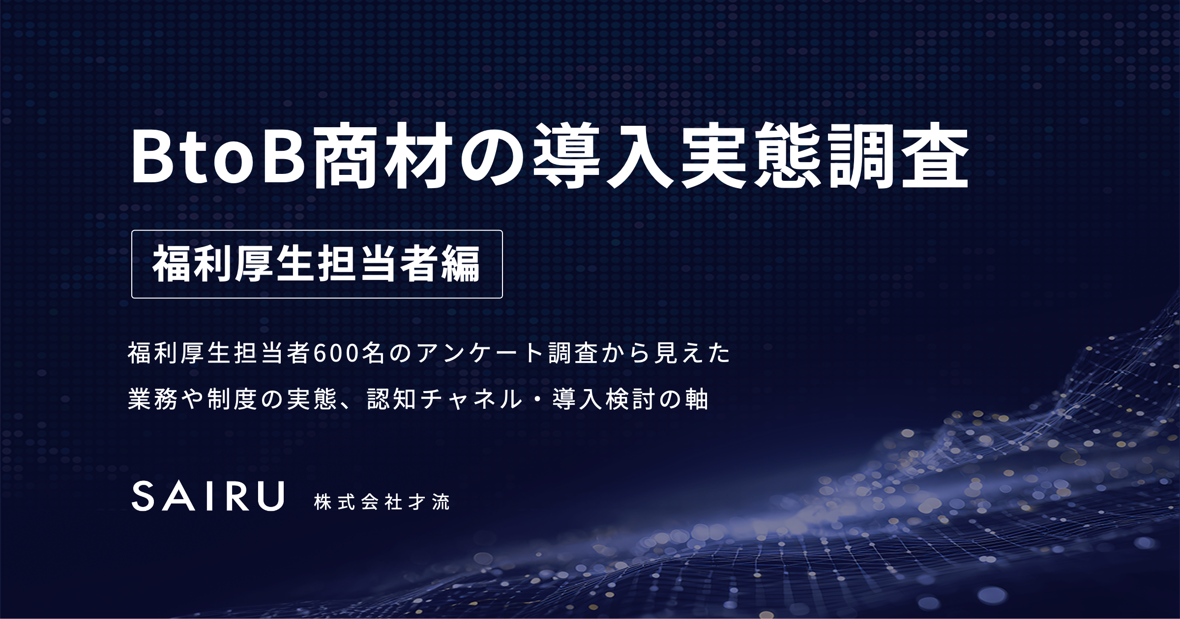 株式会社才流(サイル)は、BtoB商材の購買行動につながる実態を探るべく、職種別に調査を進めています。今回は、福利厚生担当者に焦点をあてた調査の一部を公開しましたのでお知らせいたします。福利厚生担当者向けのマーケティング戦略・施策立案にお役立てください。