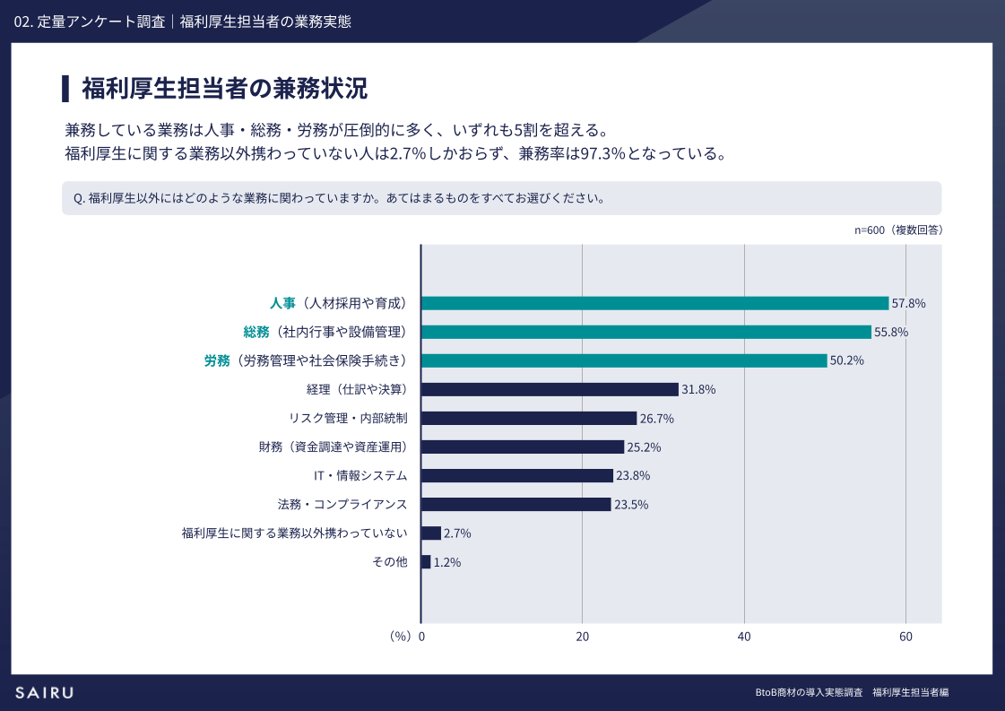 福利厚生担当者の兼務率は97.3%、制度導入の検討きっかけは「法改正」が最多 |才流が福利厚生担当者600名を調査