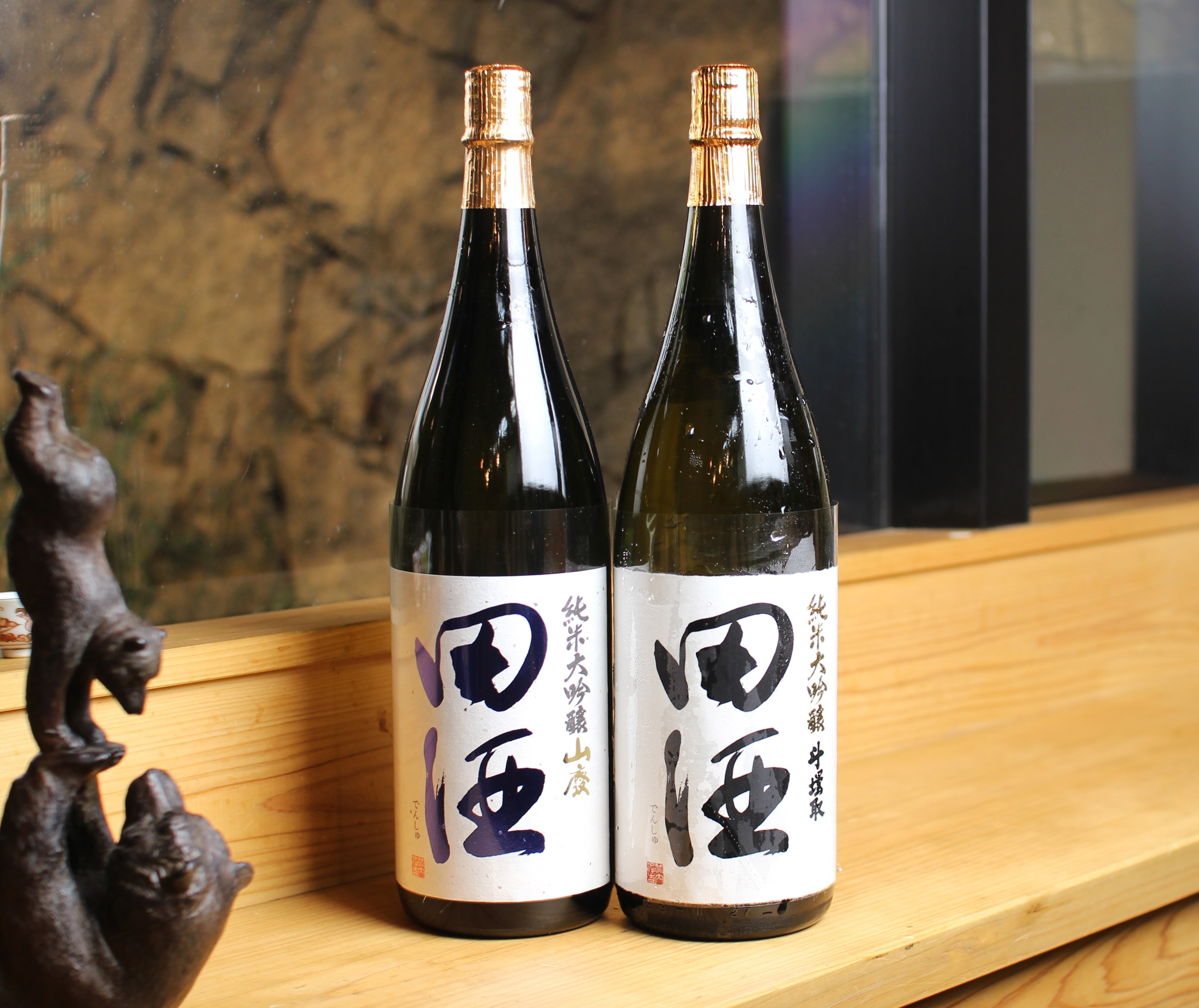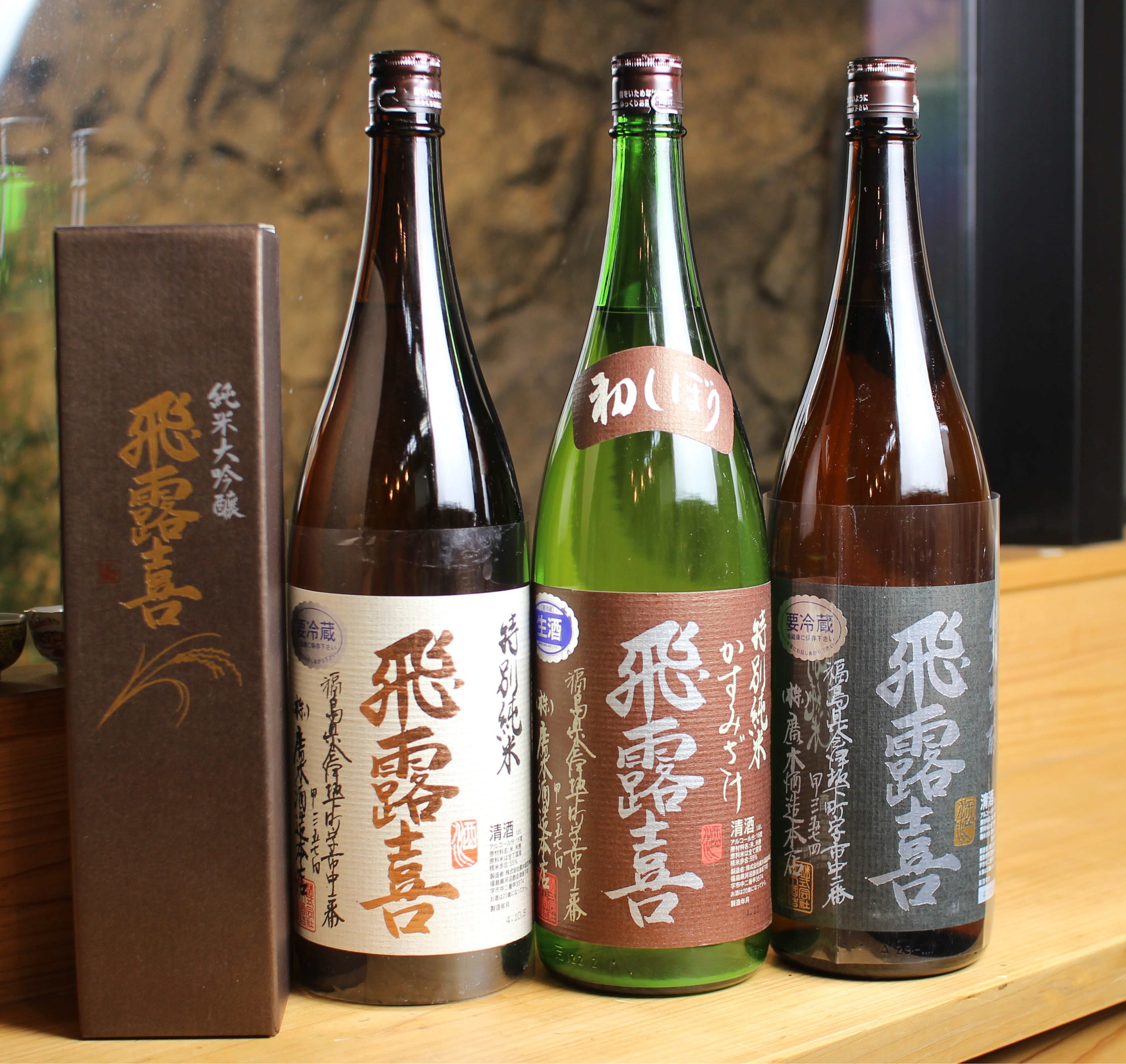 その経験や複数店舗居酒屋を経営するオーナーが酒屋との信頼で仕入れる日本酒は、厳選されたブランド日本酒ばかり。さらに磯自慢、十四代、而今(じこん)などのプレミア日本酒も取り扱い、これらは飲み放題ではないが、原価30〜50%の適正価格で提供する。また、四合瓶で5千円を超えるような高級日本酒も取り扱う。
