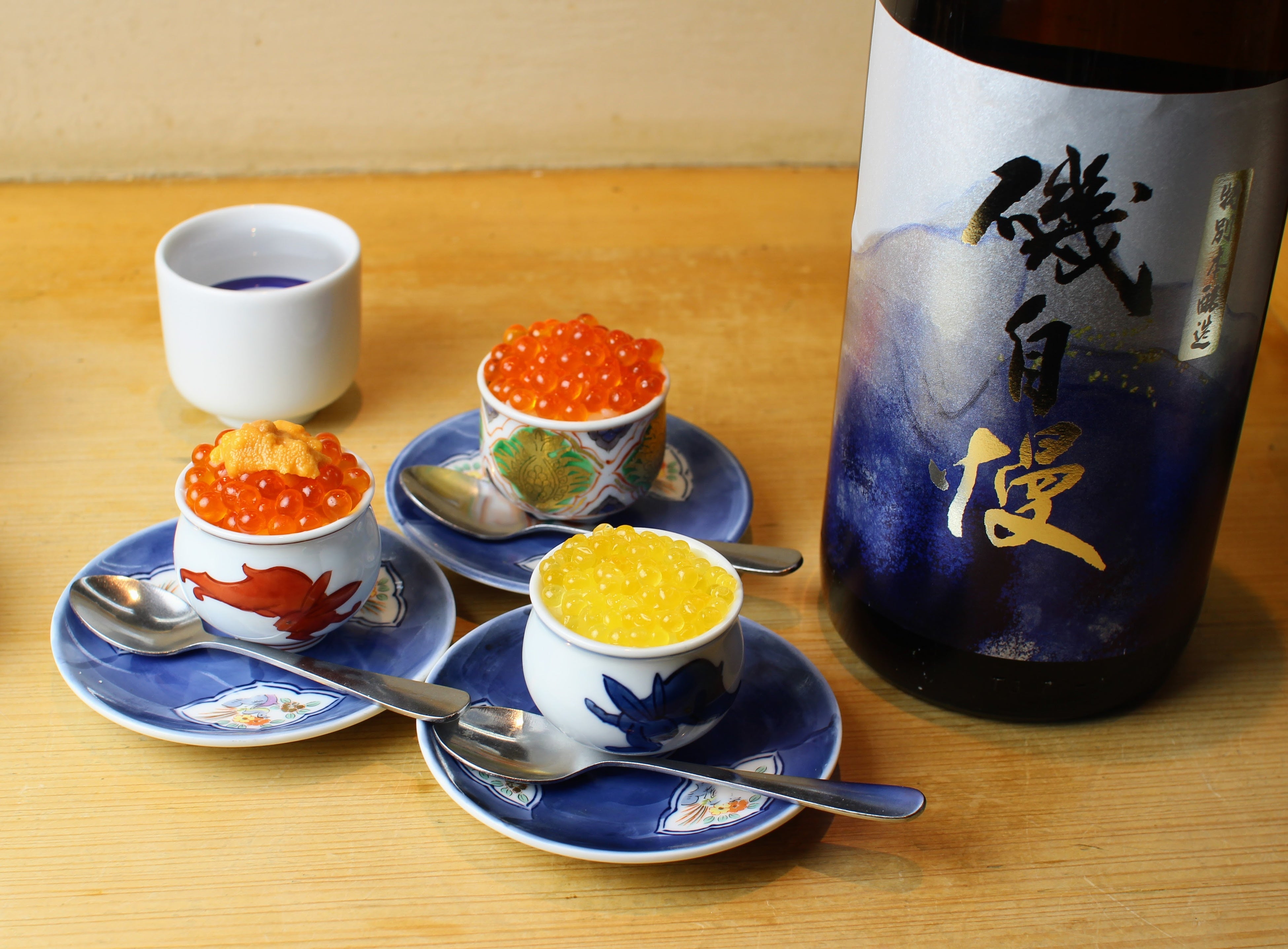 系列店でいくら専門店もあるため、品質が高い国産の牡蠣醤油で漬けた自家製のいくらは、食感もよく旨い。そんないくらをおちょこで丼に。手のひらサイズで見た目もかわいく、飲んだ後でもスルッと食べられる。