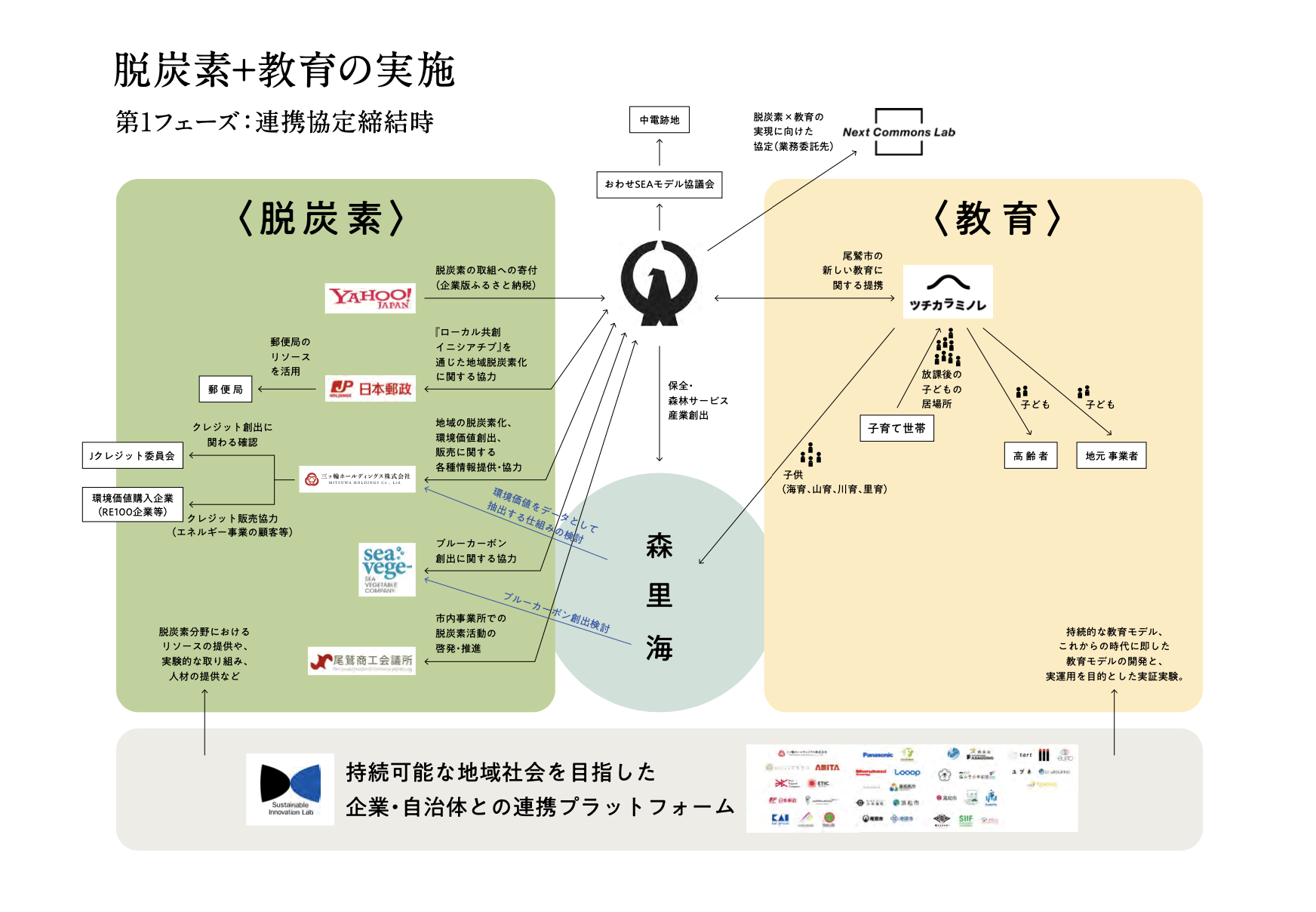 尾鷲市では、脱炭素と教育を基盤とする「22世紀に向けたサステナブルシティ」の実現を目指し、2022年3月1日に「尾鷲市ゼロカーボンシティ宣言」を行いました。尾鷲市の豊かな自然資源を生かし、行政のみではなく市民や脱炭素と教育の分野に強みを持つ各セクターが協業することで、さらなるプロジェクトの推進力強化を図ります。
