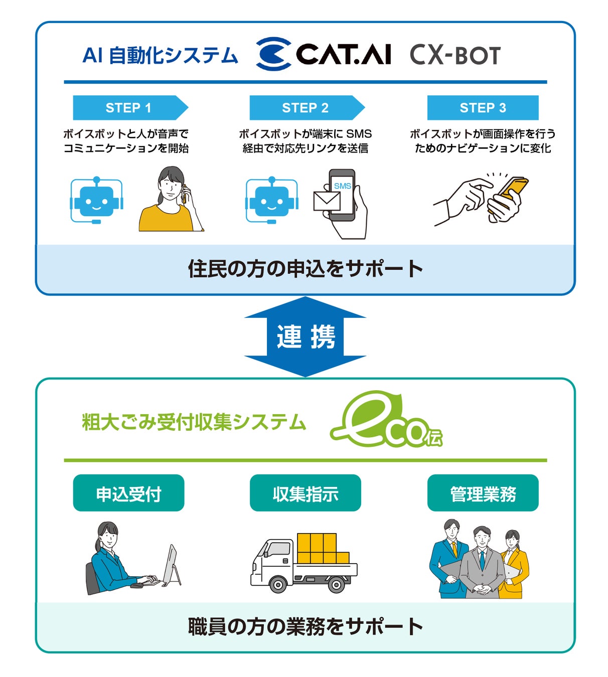 トゥモロー・ネットの「CAT.AI」と両備システムズの粗大ごみ収集受付システム「Eco伝」が連携