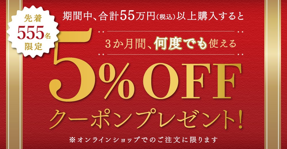期間中のご購入金額の合計が、55万円(税込)以上のお客様が対象です。