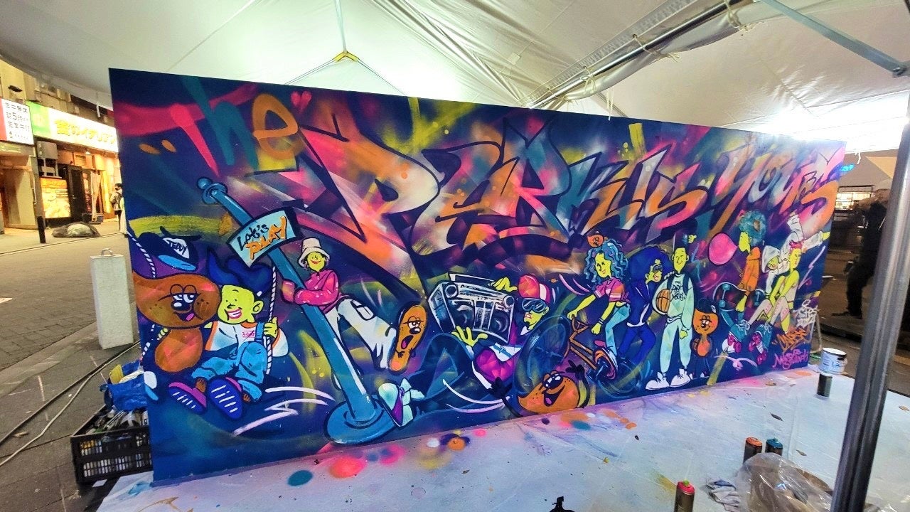 グラフィティアーティスト、ペインターが描く大迫力のライブペインティングは圧巻。今年はフリーウォールを用意し、誰でもペインティングが体験できるコーナーを作成。