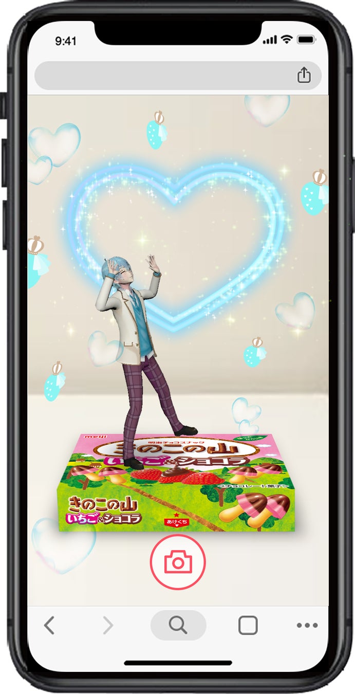 スマートフォンで対象商品のパッケージにARカメラをかざすと、すとぷりメンバーがあなたの目の前にランダムで1人登場。明治 “はっぴーすとろべりーめもりー!”テーマソング「青春チョコレート」が流れる中、ハートやいちごが降り注ぎ、メンバーからあなたに大好きの想いが届きます。