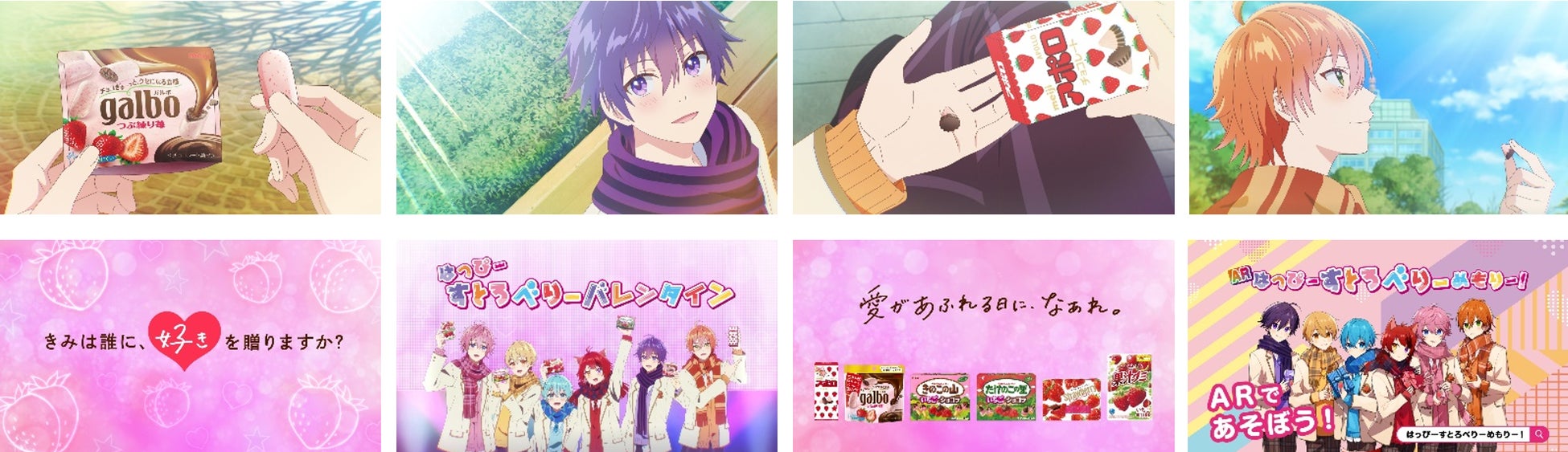 1月30日(日)に発表された明治 “はっぴーすとろべりーめもりー!”テーマソング「青春チョコレート」が流れる中、「すとぷり」メンバーと明治いちごのお菓子が登場。「今年も、この日がやってきた」「大好きな人に、“大好き”と伝える日」「いちごのお菓子は、なんだかやさしい気持ちになれちゃう」「いちごって、“好き”そのものなんだ」「楽しい気持ちも、ありがとうの気持ちも、ぜんぶ伝えられるんだ」「きみは誰に、“好き”を贈りますか?」と、大好きな人に“大好き”と伝えるバレンタインに、「楽しい」「ありがとう」の気持ちも全部伝えられるいちごのお菓子を贈って、愛があふれる日になぁれ!と元気よく語り掛けます。