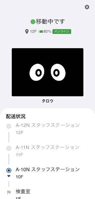 - スタッフステーション・検査部に設置されたスマートフォンでFORROを所定の位置への呼び出し、配送状況の確認、到着時の通知受信が可能