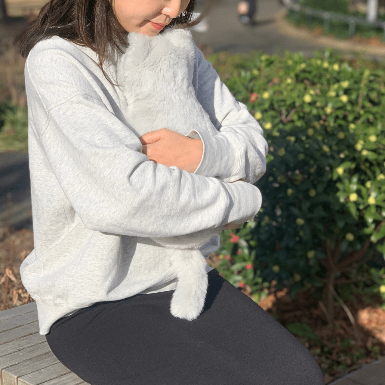 寝ている猫の見た目や触りごこち・重さを再現しており、ひざに乗せるとまるで本物の猫がいるみたい。