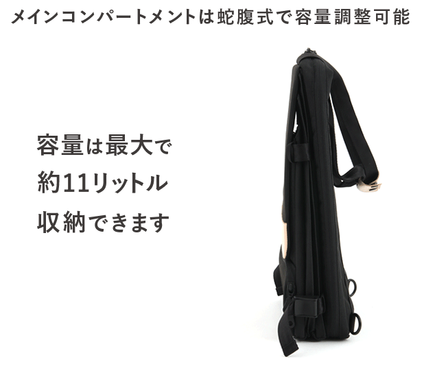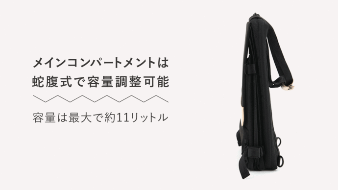 メインコンパートメントは蛇腹式で容量の調整が可能になり、MAX11L収納可能に!