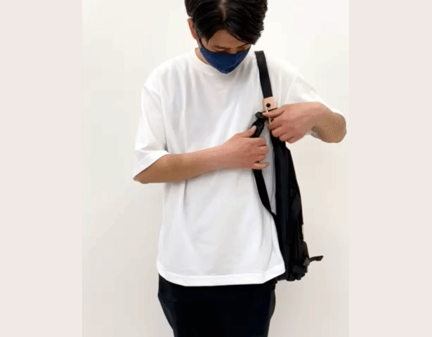 特許取得のストラップで身体にバッグをしっかりと固定し、