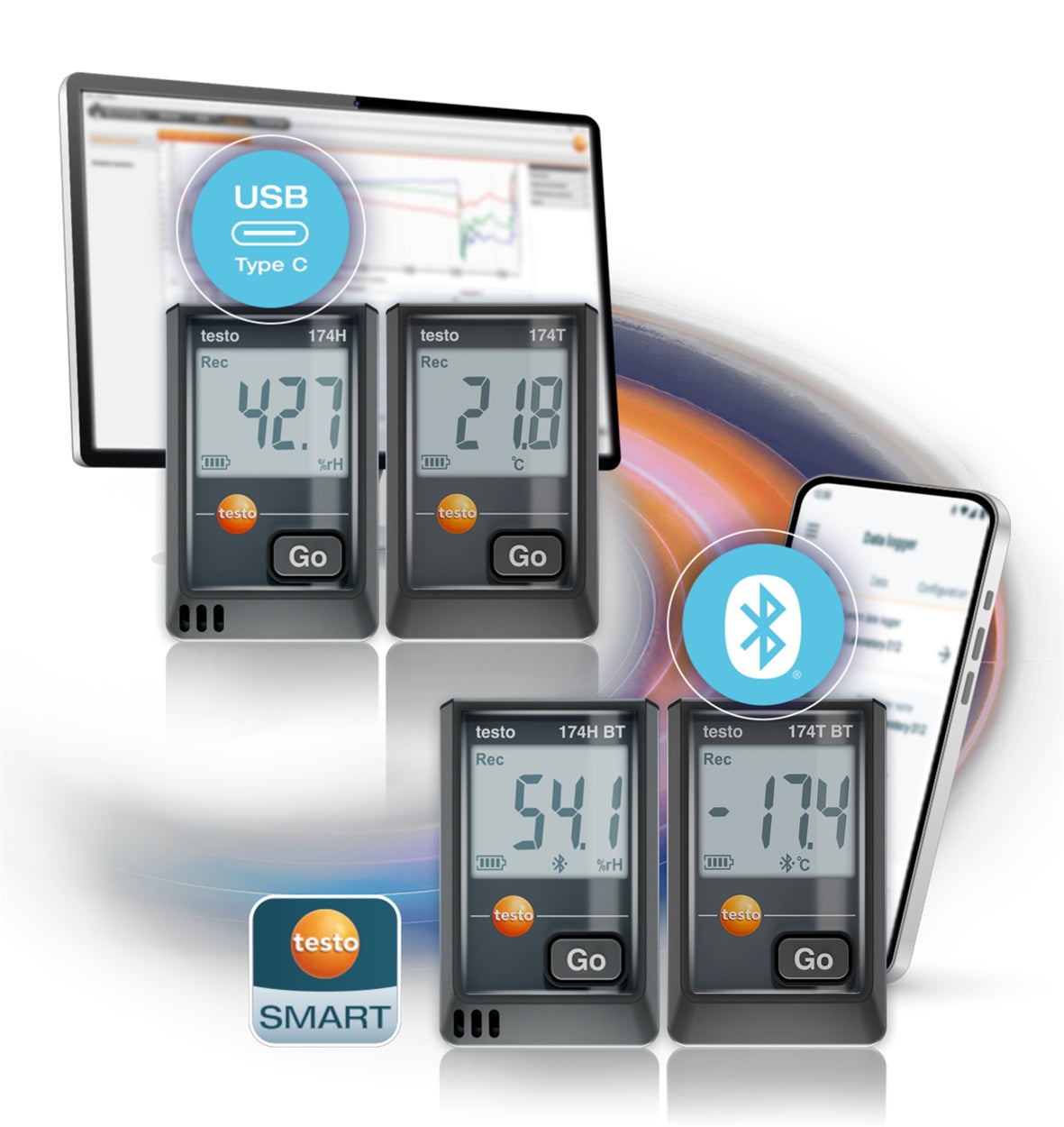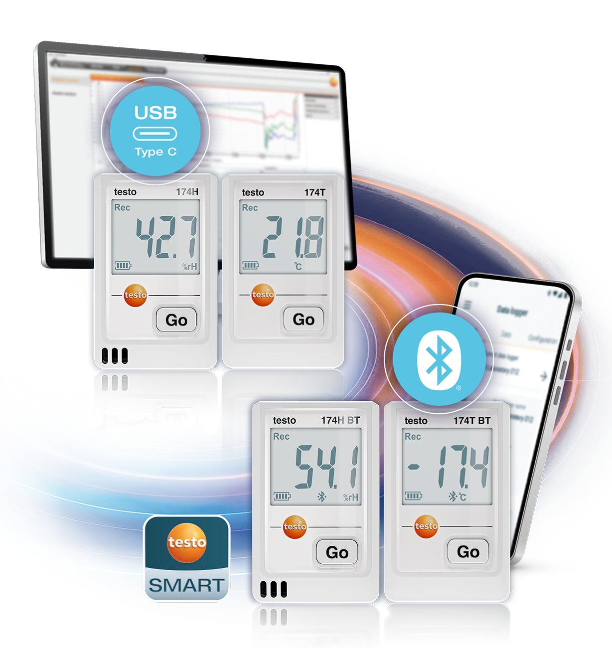 株式会社テストーでは、2010年より販売しておりましたライフサイエンスおよび食品業界における冷蔵庫・フリーザーの温度管理に加えHVACRシステムの測定、作業環境のモニタリングおよびロギングに最適なミニ温度/温湿度データロガー「 testo 174 」 をモデルチェンジし、新たにモバイルアプリに対応するBluetoothタイプとUSBポート内蔵タイプの2タイプ、計8機種を発売いたしました。