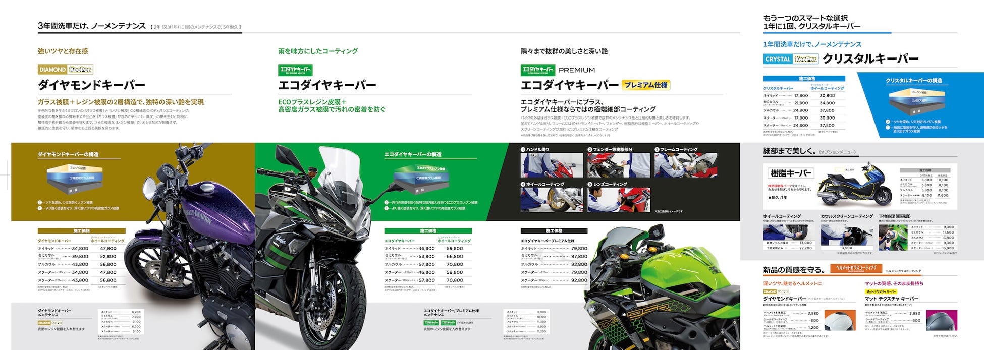 安心のピットサービスと「KeePer」導入 作業ピットスペースを完備し、オイル・タイヤ交換などの基本整備から車検整備まで対応します 。また、バイク専用の「KeePerコーティング」の施工相談・予約も承ります 。