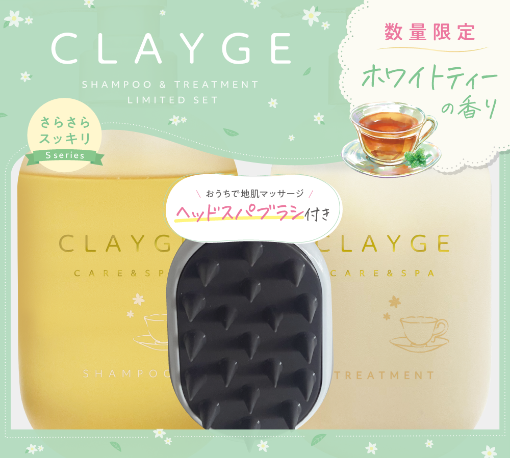 ミネラルクレイ*¹により地肌の汚れや皮脂を吸着除去し、地肌ケアをしながらうるおいを与えてさらっとなめらかな指通りへ導くSシリーズの仕上がりはそのままに、ホワイトティーの香りが登場。