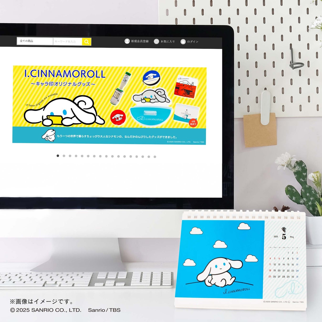 たくさんの『I.CINNAMOROLL』キャラ印.comオリジナルグッズから、まずは「卓上カレンダー・シナモンとのんびり2025ver」をご紹介します。カレンダーの表紙には枕を離したくなさそうなシナモンがデザインされ、カレンダーをめくるたびにその月ごとの季節のイベントを楽しむシナモンがあらわれます。のんびりと暮らすシナモンを見ながら、ちょっと肩の力を抜いた毎日を過ごしてみてください。卓上カレンダーは2025年4月始まりの1年分となっています。デスクにピッタリのサイズ感(約H150×W180mm)となっており、あなたのホームデスクやワークスペースを彩るアイテムです。価格は2,420円(税込)。