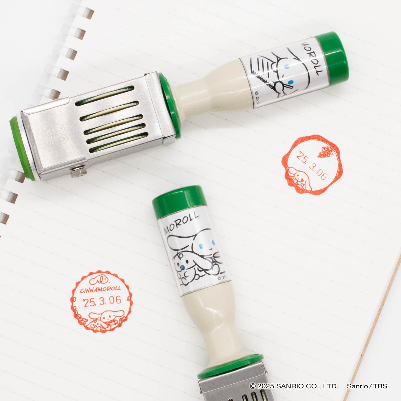 シナモンとお友だちの“ミルク”が、オフィスや日常生活で使用する日付印になって2種類登場します。ひとつは、机に向かって書き物をするシナモンが印影になった「日付印・シナモン」、もうひとつは、シナモンとミルクが寄り添ってゆったりと過ごす様子が印影になった「日付印・シナモンとミルク」です。忙しいオフィスでも、シナモンの日付印を捺せば、癒されること間違いなし。おカタい書類続きでもシナモンたちをポンと捺してちょっとリラックス。また、日常のお手紙やメモの最後にも、書いた日付と一緒にシナモンを登場させてみてはいかがでしょうか。きっと毎日の作業が楽しくなることでしょう。日付印はダイヤル式になっており、直感的に操作していただくことが可能です。シンプルなフォルムとなっていますので、オフィスにも溶け込みます。価格は各4,620円(税込)。
