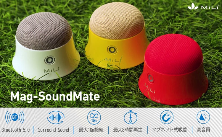 - ステレオ出力ができる手のひらサイズのポータブルスピーカー「MiLi Mag-SoundMate」