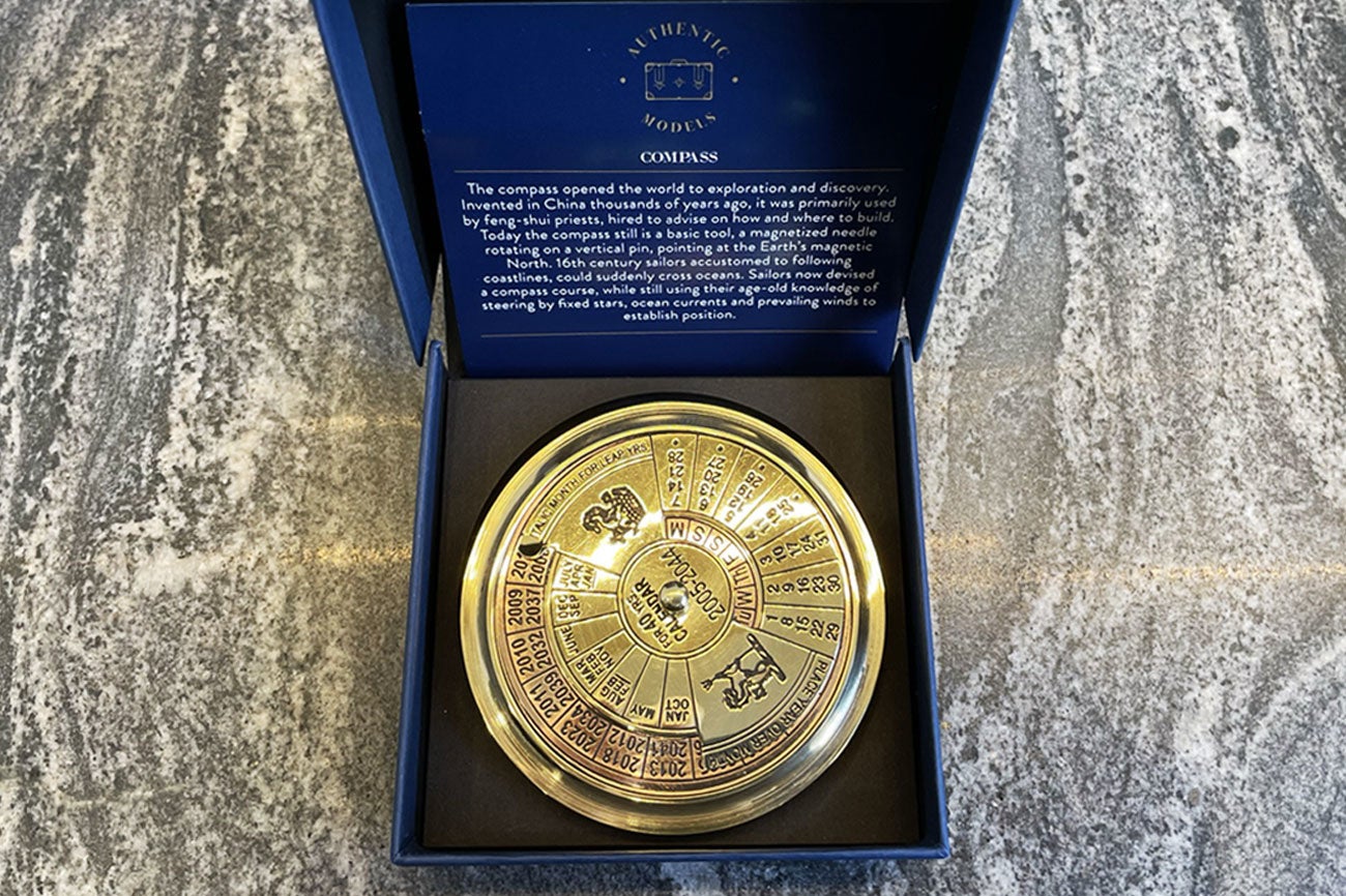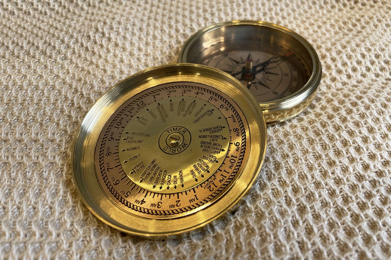 しかも、くるくると回して蓋を開けると世界時計とコンパスが。