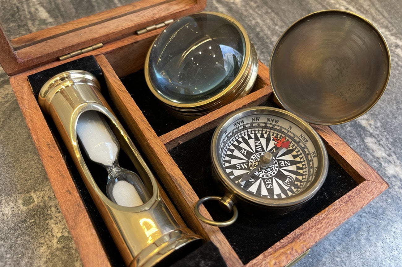 - コンパス、魚眼レンズ、砂時計が美しい箱に入った「The Explorers Gift Box (探検者セット)」