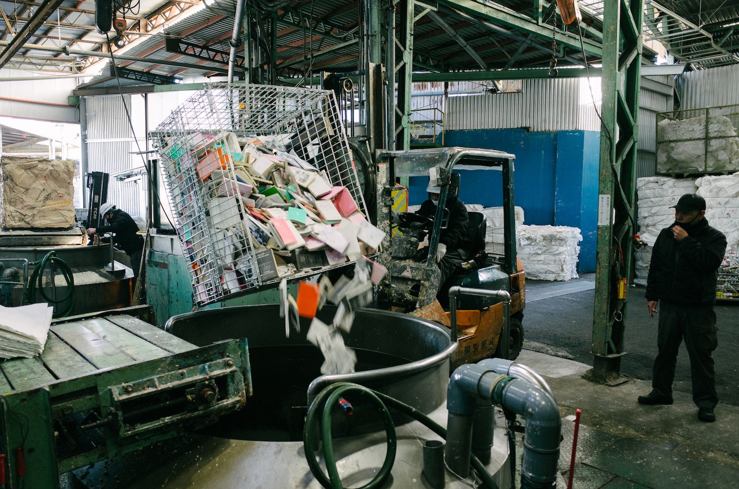回収された本は、古紙となり、再生紙として生まれ変わります。それは古紙リサイクルという、ひとつの完成された循環の形ではあります。けれど、日々大量の本が本としての意味を失っていくのを見ているうちに、「なにか、自分たちにもできることはないだろうか」という思いが募っていきました。