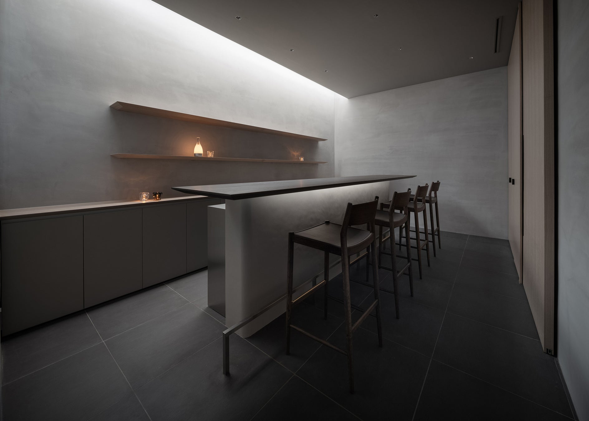 Ambientec製品の魅力をよりリアルに体感いただくため、バーカウンターを設置し、実際の空間で照明がどのように演出されるかを体験できるラボラトリー的なアプローチを取り入れています。また、製品展示スペースには、舞台上のスポットライトのような5000 ケルビンのピンスポット照明を使用。プロダクト自体の美しさを際立たせるとともに、日中の明るい環境でもオブジェのように存在感を放つAmbientec 製品の特性を表現します。