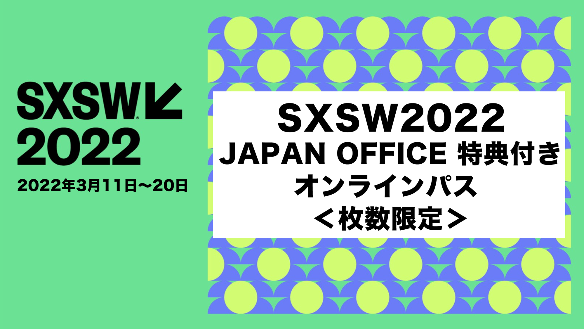 SXSW2022 Japan Office特典付きオンラインパスは50,000円(税込)となります。数量限定、売切れ次第終了となりますので、是非お早めにお申し込みください。