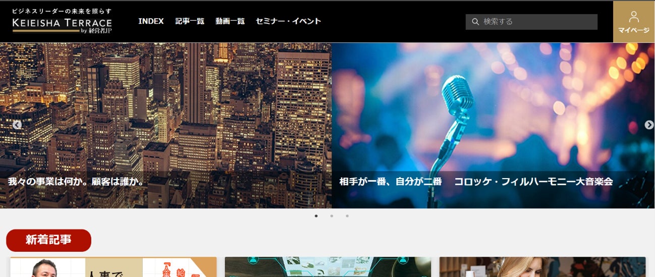各業界で活躍されている経営者やCxOの方々が登場するインタビュー記事やKEIEISHA TERRACEが主催するオンラインセミナー、過去開催したセミナーの動画、識者の方々による専門的な連載など豊富なコンテンツラインナップがあり、それらをより見やすく、ご利用いただきやすくするために、主にトップページのデザインとセミナーへの参加導線に焦点を当ててリニューアルを実施いたしました。また、サイトアクセスのレスポンスも向上し、皆様によりスムーズかつ快適に記事を閲覧いただけるようになりました。