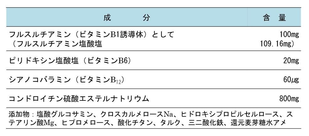 ・フルスルチアミンは、体内でビタミンB1に変換され、関節痛・腰痛・神経痛などの症状を緩和します。