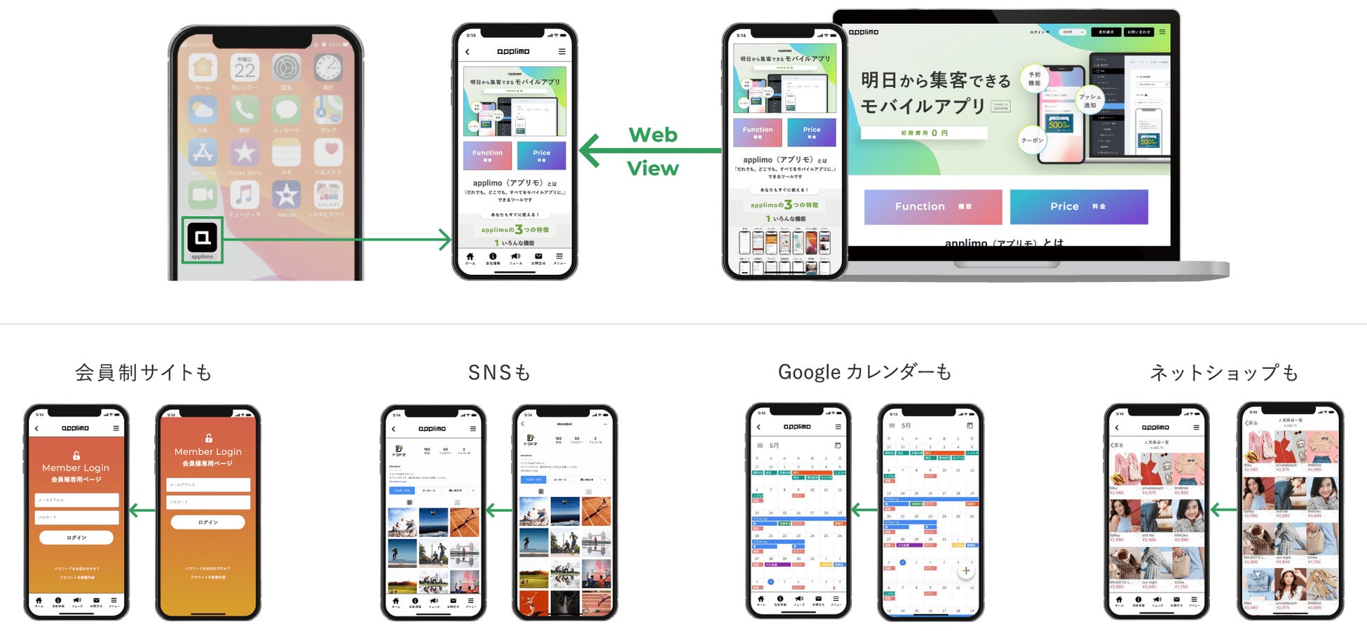 WebView(ウェブビュー)機能で、Webサイトをアプリ上で表示することができます。