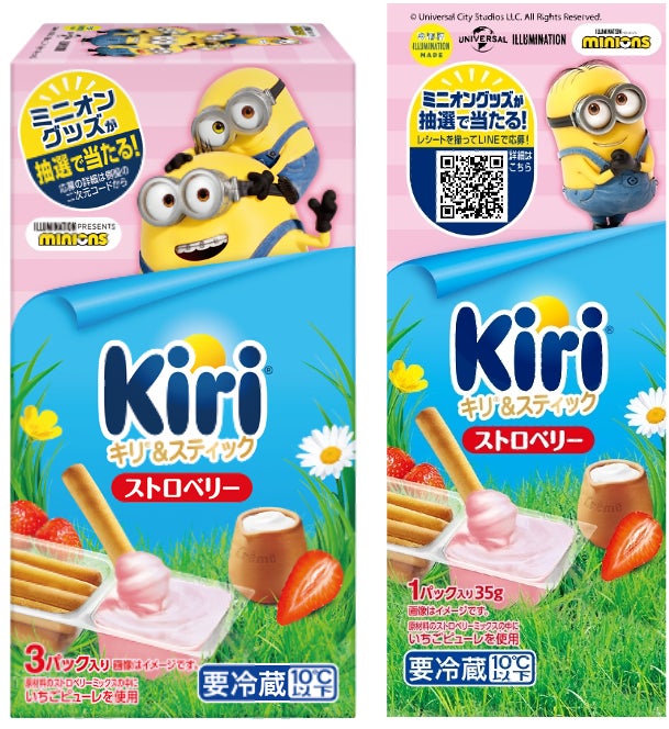 豊かな自然の中で育てられた牛から採れる新鮮なミルクと生クリームの厳選素材から生まれた「キリ クリーミーポーション」は、子供から大人まで多くの方々に親しまれています。このたび、ユニバーサルの大人気映画「怪盗グルー/ミニオンズ」シリーズの最新作『怪盗グルーのミニオン超変身』の7月19日(金)の公開に合わせ、初めてコラボレーションし、「キリ」全8商品にミニオンの人気キャラクターが登場する限定パッケージを数量限定で発売いたします。