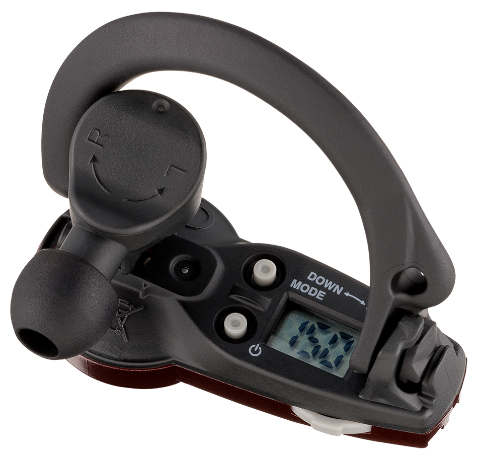 DM-1の操作は「テンポ」と「リズム」を選ぶだけ。音楽知識は一切不要です。スマートフォンも必要ありません(イヤホンケーブルやワイヤレス接続トラブルもなし)。シンプルなメトロノームを搭載した片耳イヤホンですので、誰でも簡単に操作できます。ディスプレイでテンポを確認したり、ボディ側面のジョグ・スイッチで本体を耳に取り付けたまま直感的にテンポ変更なども可能。超小型サイズながら、コイン形リチウム電池で約 200 時間、連続使用できます。
