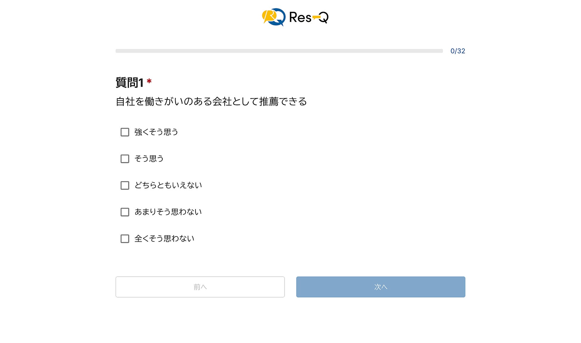 サーベイは32問で構成されており、回答時間は約10分程度です。