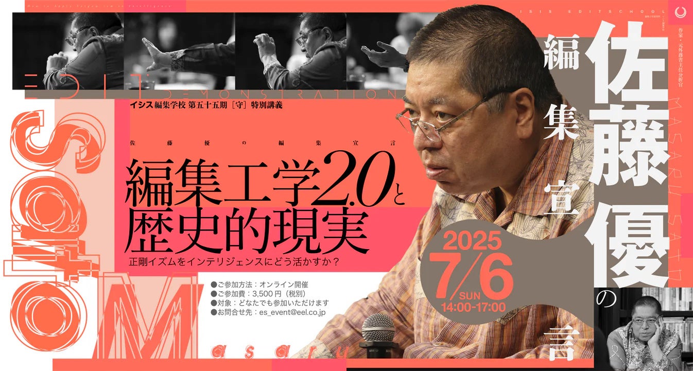 編集工学研究所が運営する「イシス編集学校」の特別公開講義に、佐藤優氏が登壇します。7月6日(日)14:00-17:00にオンライン開催です。