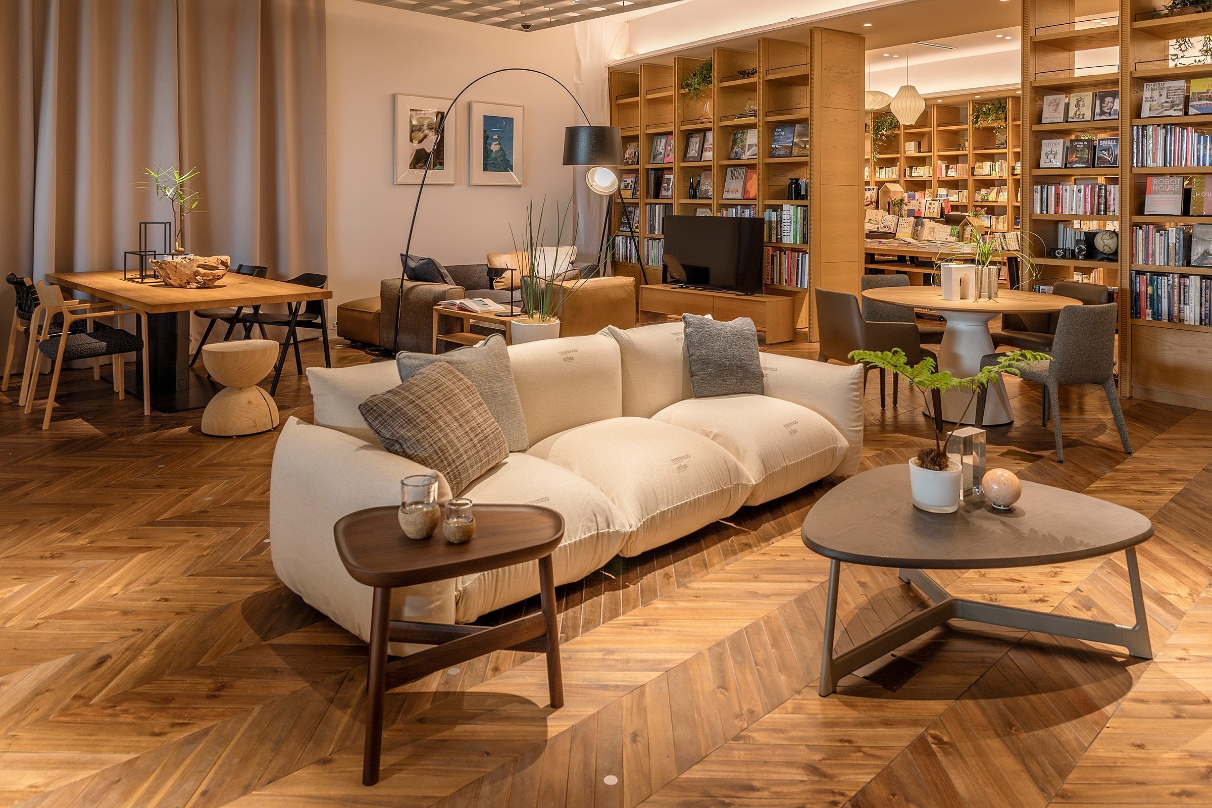 2015年に二子玉川ライズS.C. テラスマーケット『二子玉川 蔦屋家電』 2Fにアルフレックス玉川がオープンしてから7年が経ち、気持ちを新たに、これまで以上にゆっくりと家具選びをお楽しみいただけるよう、同じフロア内奥のより広く落ち着いたエリアに移りました。同店でアルフレックスジャパン初めてのアップサイクル製品の取り扱いも始めます。