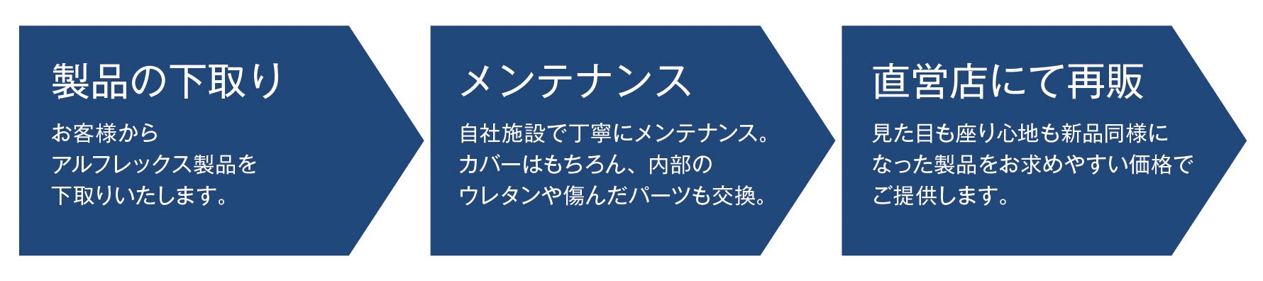 新しいソファをよりお得にお買い換えいただくために、お使いにならなくなったアルフレックス製品の下取り金額を通常よりもアップする「ソファ下取りキャンペーン」を実施いたします。下取りしたソファは、アップサイクル製品として販売します。
