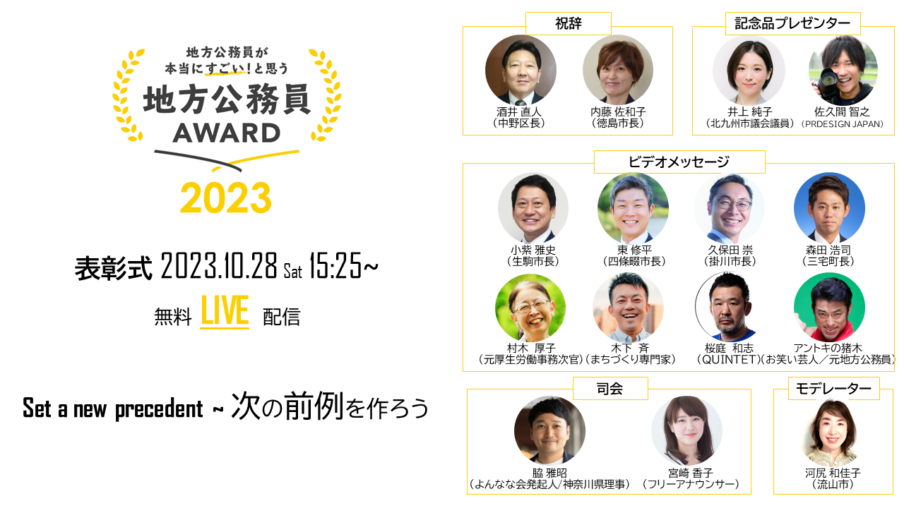 豪華ゲスト陣と、地方公務員アワード2023受賞者を祝福・深掘り!普段、社会で知られることのない公務員の地道な行動や想いにも触れたいと思います!