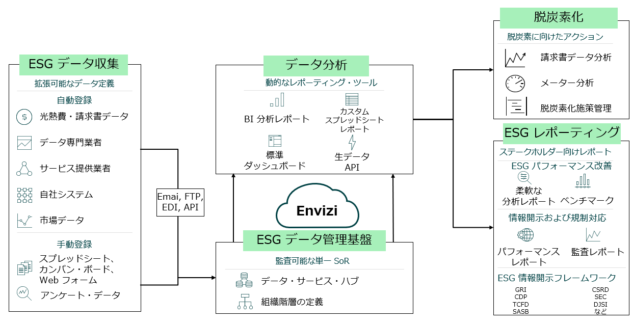 このように、ESG情報を監査に耐えうる形で精確に一元管理し、データ収集・分析やレポート作成等のサステナビリティ関連業務を全面的に効率化した上で、脱炭素化施策で結果を出すための先進的ITツールを導入することが、企業にとって必須になりつつあります。