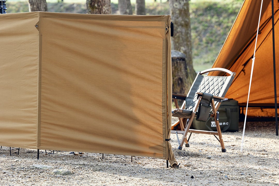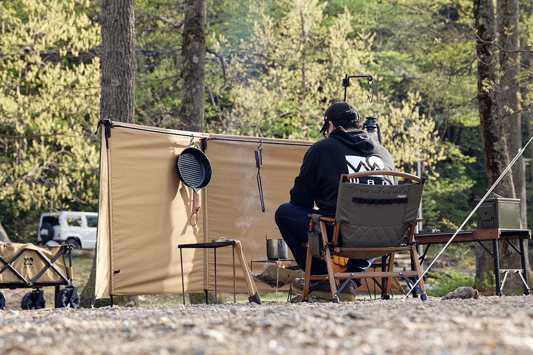 高さ115cmの陣幕がキャンプサイトのプライベート性を高める目隠しとなり、周囲を気にせずゆったりと焚き火やリラックスした時間を過ごすことが可能に。