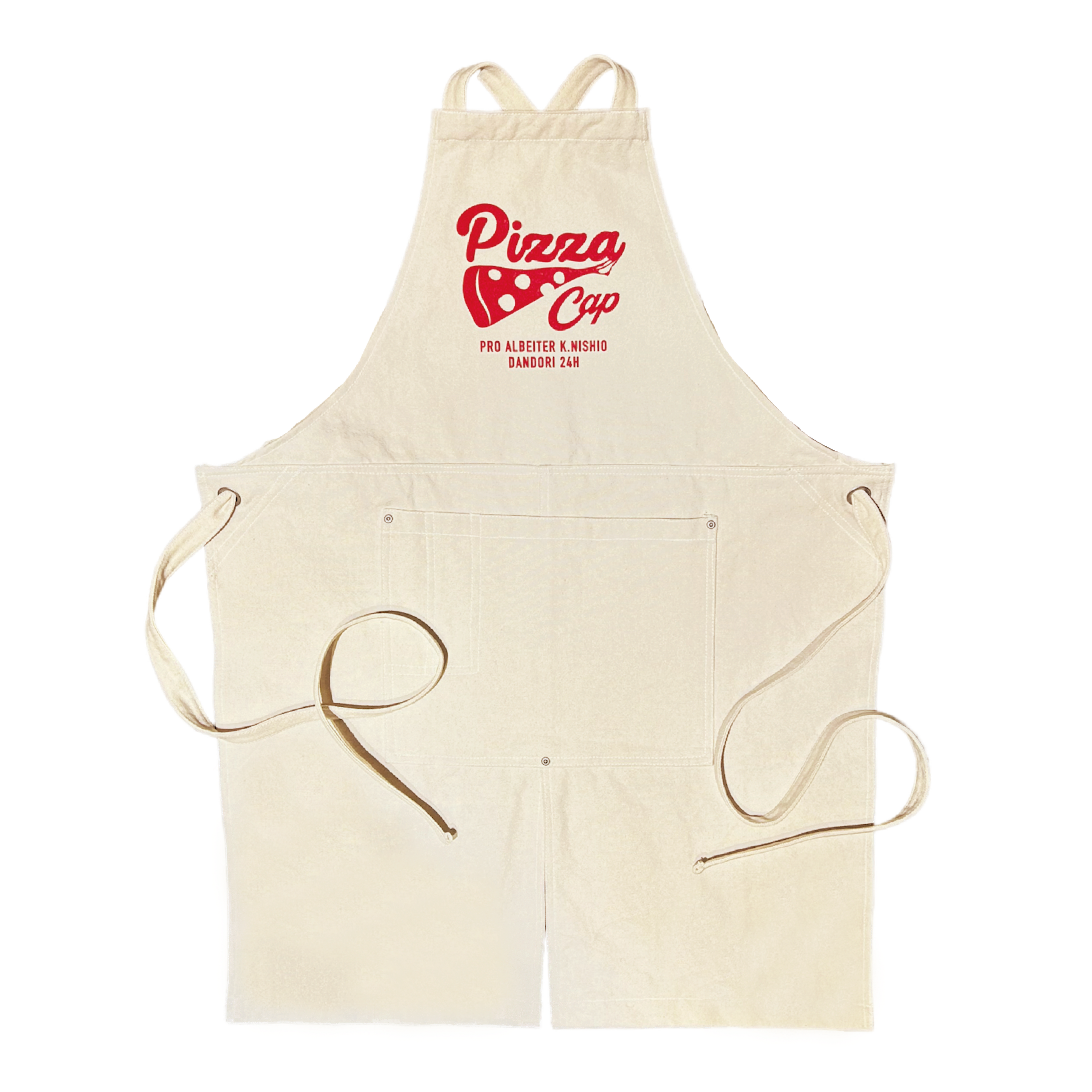 PIZZA CAPの店員になった気分も味わえる、ヘヴィーな生地と実用性をそなえたワークエプロンです。