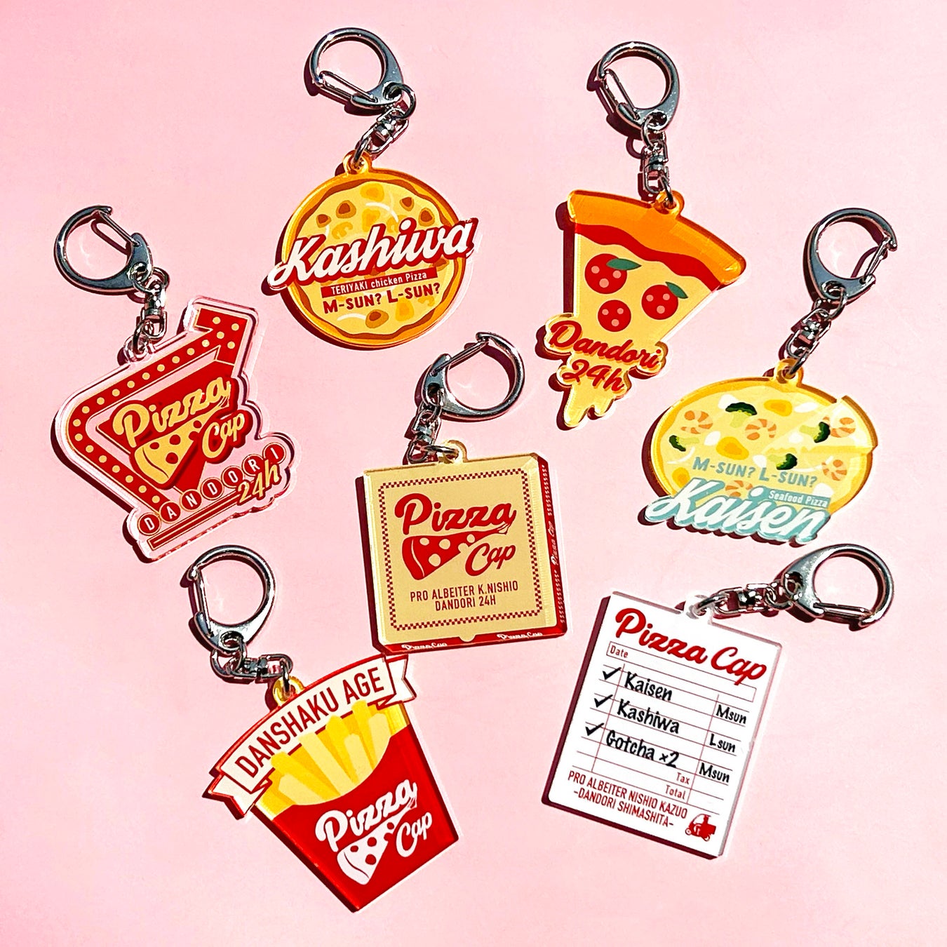 PIZZA CAPのサインやピザ箱、ピザ型のかわいいアクリルキーホルダー全7種。