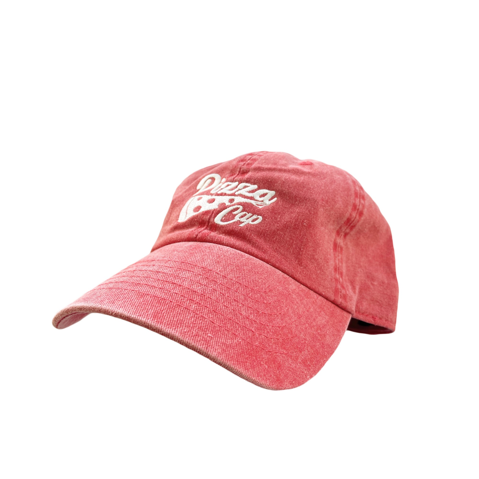 PIZZA CAPの店員気分が味わえる赤いローキャップ。