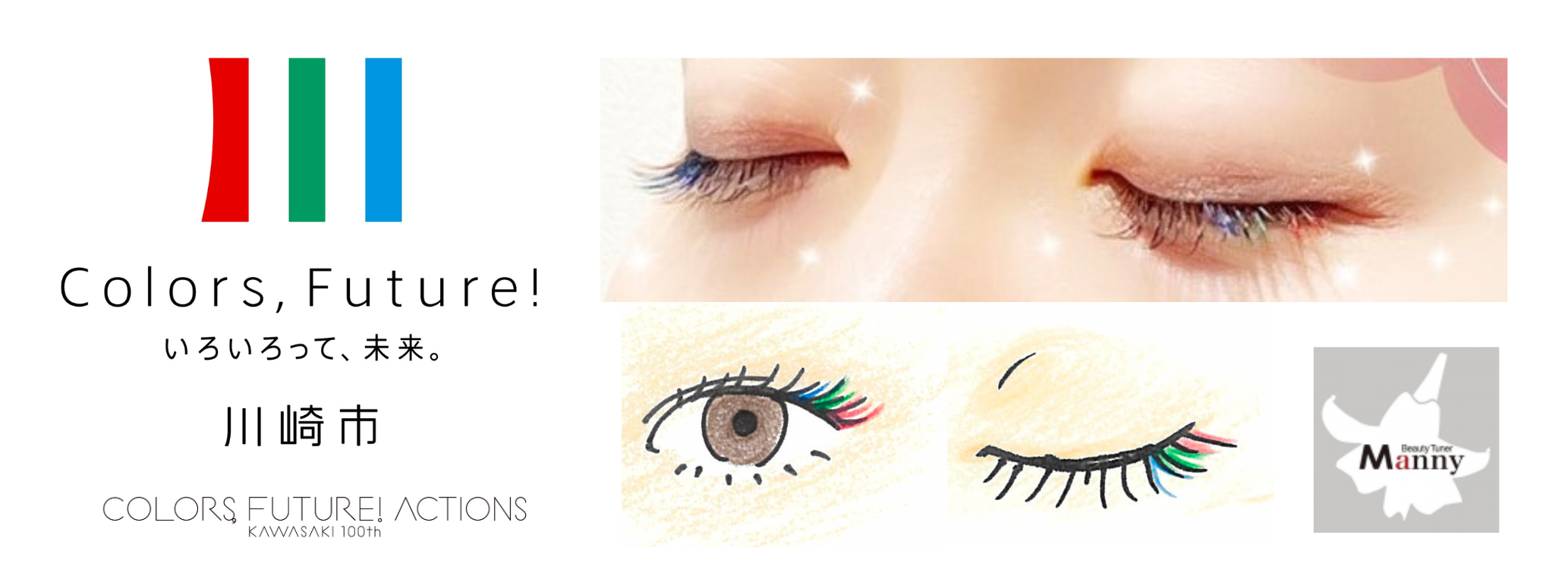 光三原色をイメージした川崎市のシンボルマークがまつ毛エクステになりました!15年以上に渡り、川崎の女性たちに愛されてきた『Manny』が、地元への想いをアイラッシュに込めた特別なプランで、他にはない個性豊かな目元を演出。目尻にさりげなく装着しますので、華やかさはありつつナチュラルな雰囲気に仕上がります。