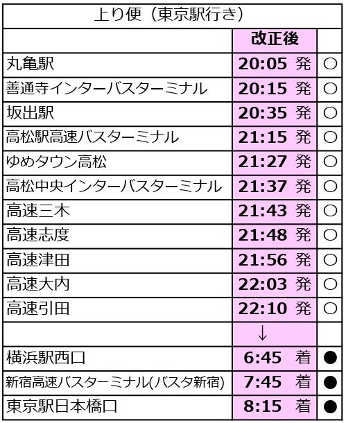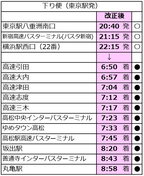 夜行高速バス「東京・新宿・横浜~高松・丸亀線」東京駅(八重洲南口/日本橋口)へ乗り入れ開始!