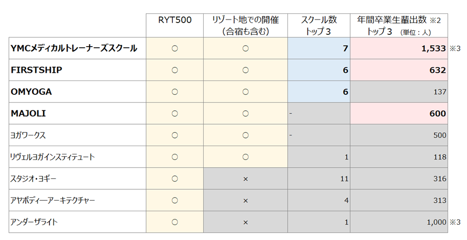 ※3 RYT200を分割するコースでの卒業生が含まれている可能性あり。