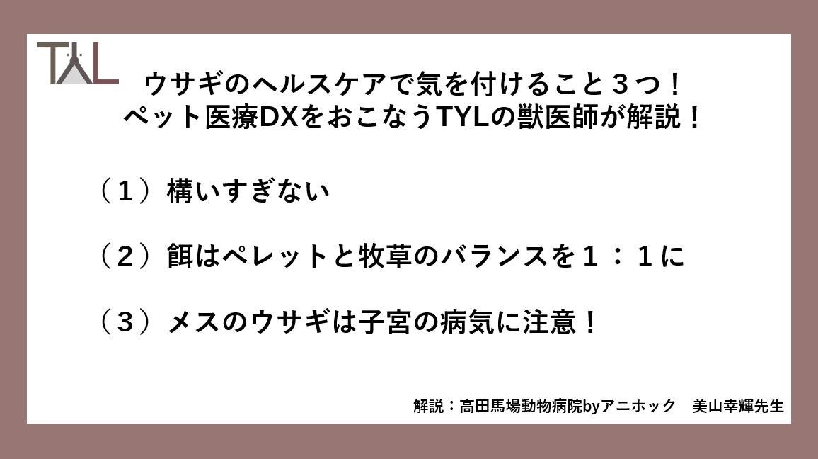 ■ペットの医療DXをおこなうTYLが、ウサギの飼育で気を付けることを解説!