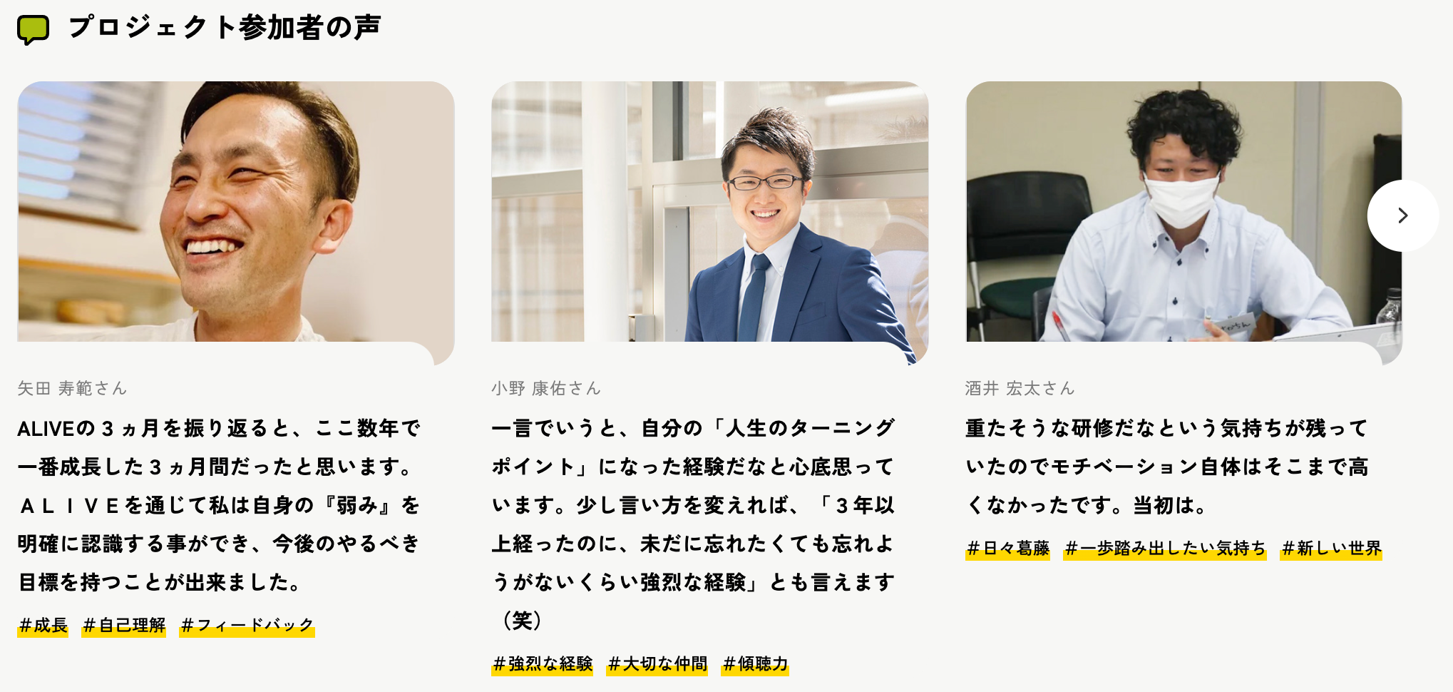 | 過去に参加した”参加者”の声を公開しています。