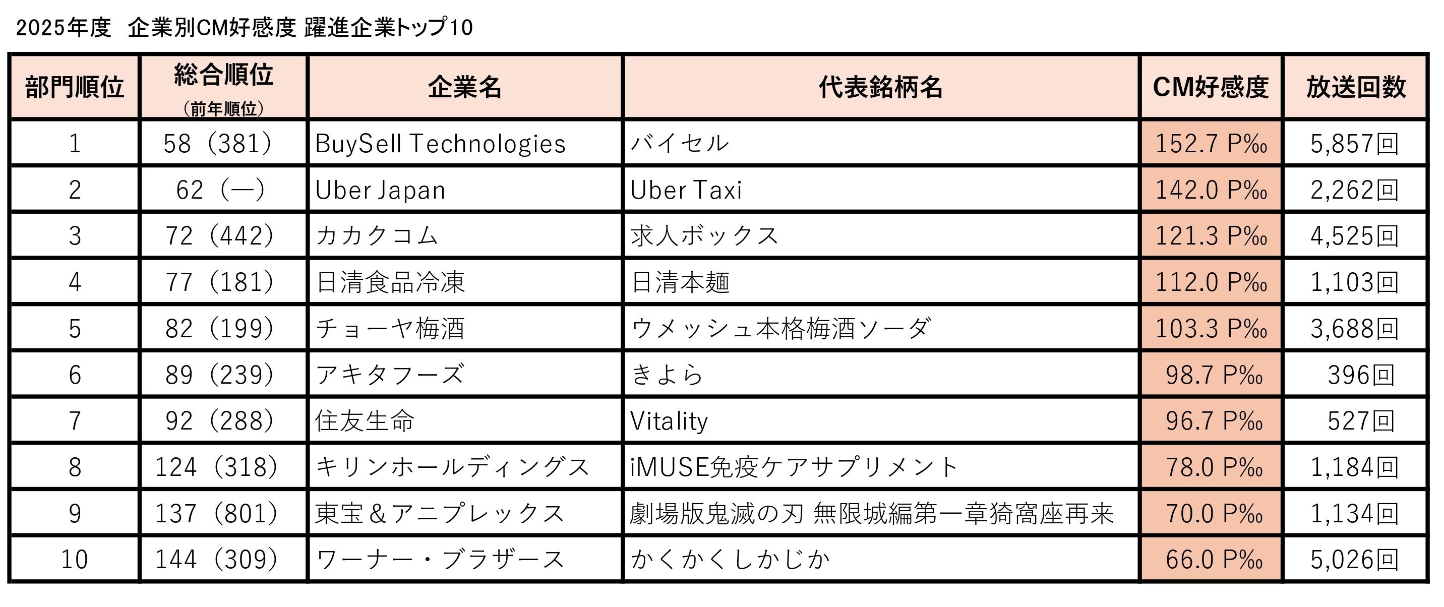 ― 2025年度 企業別CM好感度ランキング ―