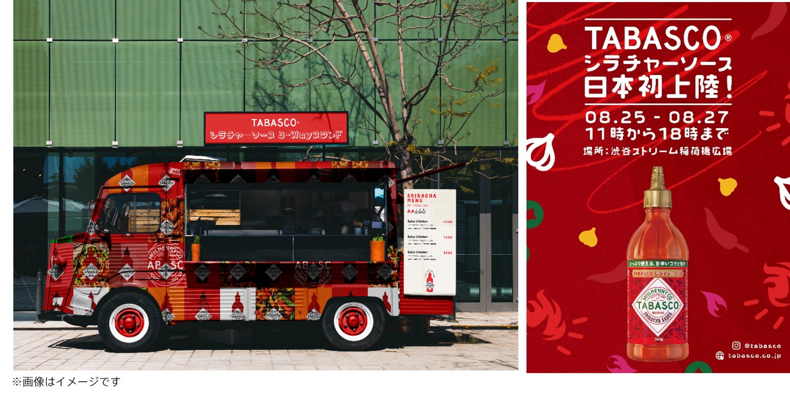 本製品の日本初上陸を記念し、渋谷・稲荷橋広場にて、8月25日(金)から 27日(日)の3日間限定でポップアップイベント「TABASCO®シラチャ―ソース3-wayスタンド」を開催いたします。「TABASCO® シラチャーソース」をかけて、混ぜて、ディップして3-wayで楽しめる2つのスペシャルメニューを無料配布するほか、キャンペーン参加者先着100名様に「TABASCO® シラチャーソース」をプレゼントいたします。