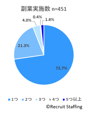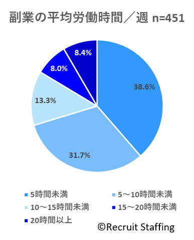 ■副業の数は「1つ」が最も多く、労働時間は「週10時間未満」が約7割。
